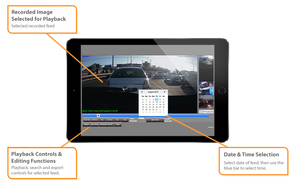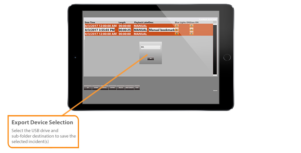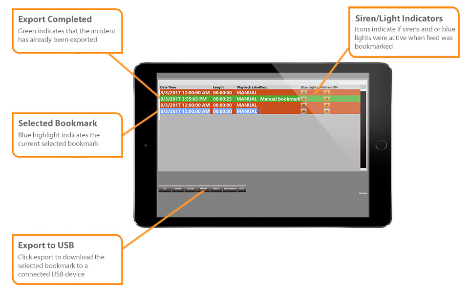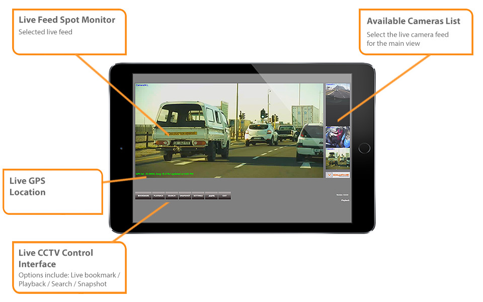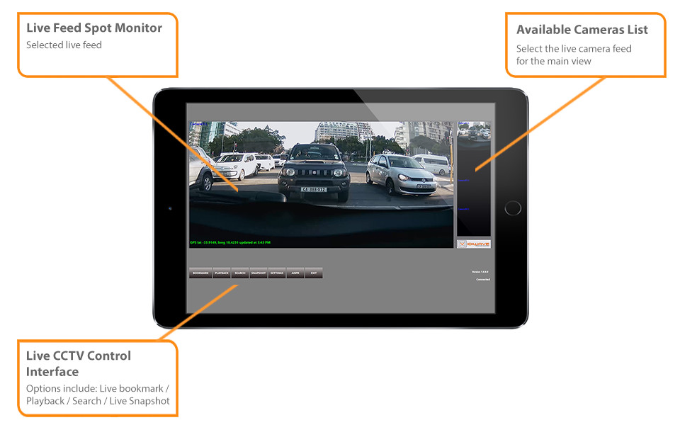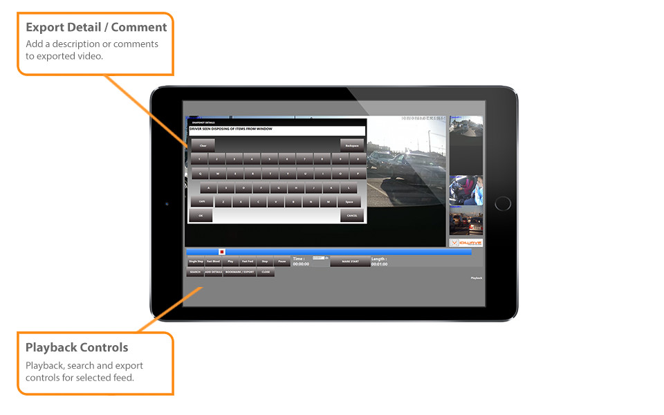 Vidi-Sync Patrol HD™ is our tablet touchscreen software interface that allows police officers to have local access to and interact with their in-car Mobile CCTV system.